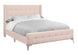 - Queen size contemporary platform bed, upholstered in a chic pink velvet fabric over foam padding on all sides, with luxurious button tufting on the wingback headboard and curved footboard.