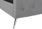 - Support feet are covered in the same linen look fabric for a clean refined look, with slanted chrome metal legs attached to the footboard for a modern luxe appeal in a bedroom