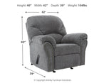 Why sacrifice comfort for style (or style for comfort) when you can have the best of both in this rocker recliner in pewter gray. Elements include a chic divided-back design and pillow top wrapped armrests that make nodding off all too easy. Calling attention to the elegantly flared armrests—black nickel nailhead trim for a punch of cool character.