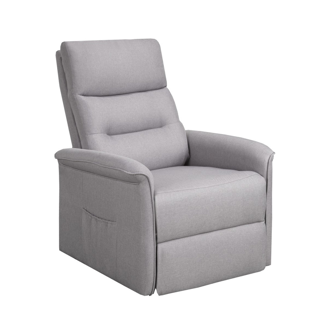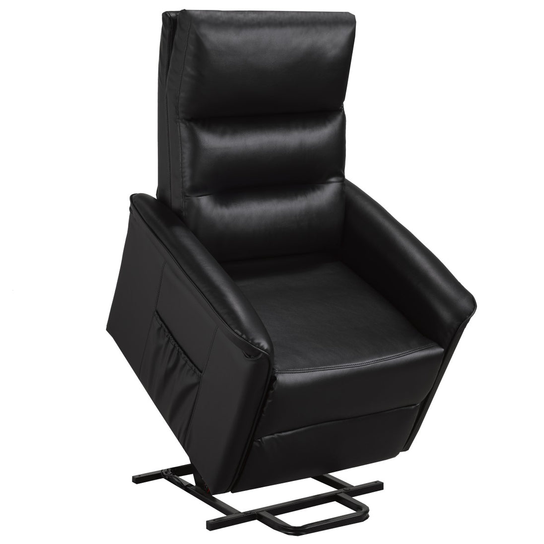 Plush comfort meets sophisticated style in the Recliner Lift Chair from Brassex. This recliner chair is available in a sleek and versatile black color that will complement a wide range of home décors, and has a slim profile designed to fit in most compact spaces. Featuring a power lift function and a multi-position power reclining mechanism, this recliner lift chair is built for ergonomic comfort and supports proper back alignment while you’re relaxing with a book or watching TV. It's even equipped with a convenient side pouch to hold the TV remote, magazines, and more. With a padded headrest, armrests, backrest, and footrest for plush comfort and a rich fabric cover that provides an extra luxurious look and feel, this lift recliner chair will quickly become your favourite seat in the house.