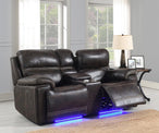 Loveseat: Two power recliners with power headrests, center console with cup holders, hidden storage, USB port, and additional wireless charger