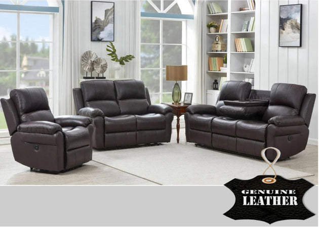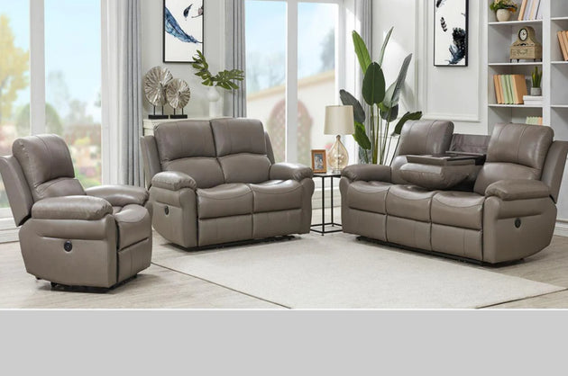Amiyah Dual Power Genuine Leather Recliner Collection - Dark Grey