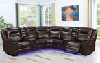 Integrated LED strip lighting along the base adds a contemporary ambiance, making movie nights or cozy evenings feel extra special.