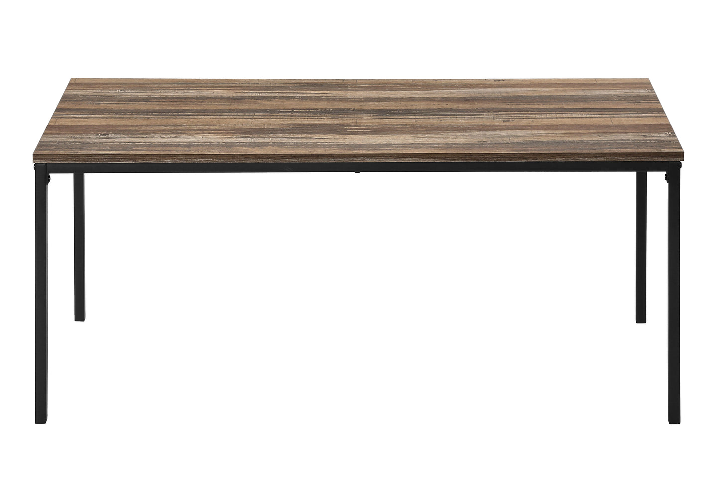 - This fashionable 3-piece coffee table set features a contemporary design with brown reclaimed laminate tops and sleek black metal frame.