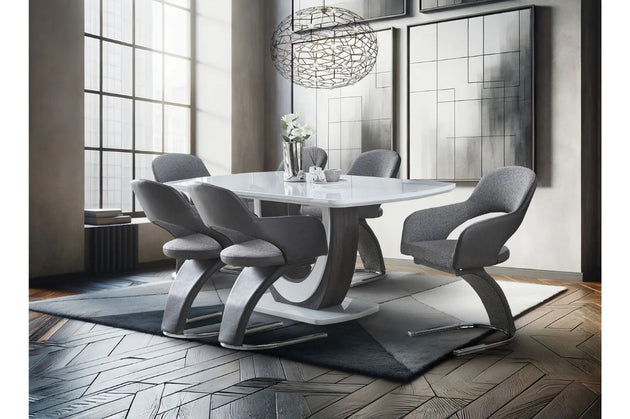 Julius/Signy 7pc Dining Set in White Table with Black Chair
