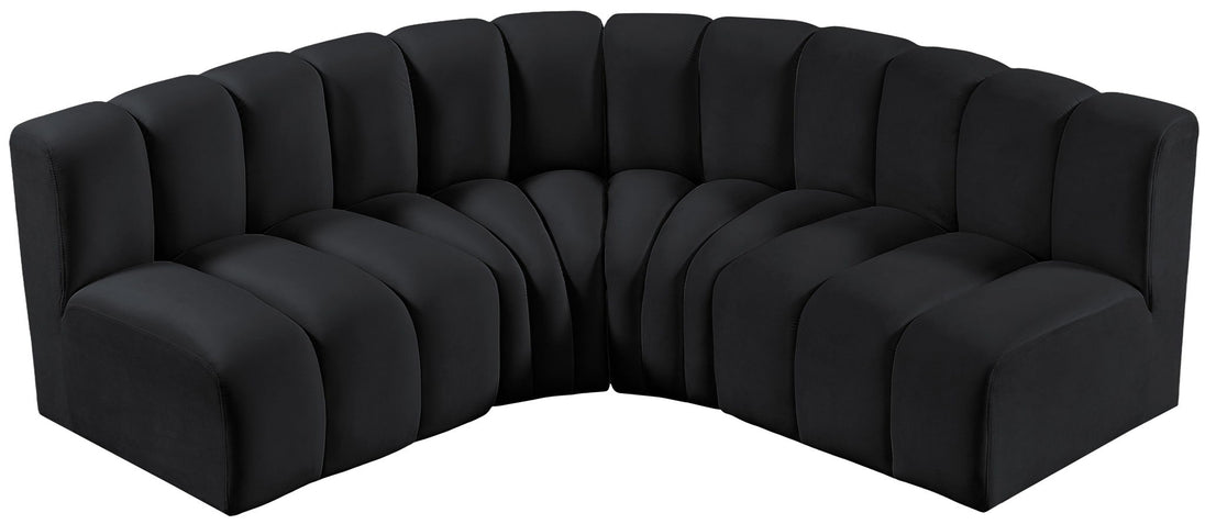 Arc - Velvet 4 Piece Corner Modular Sofa - Black