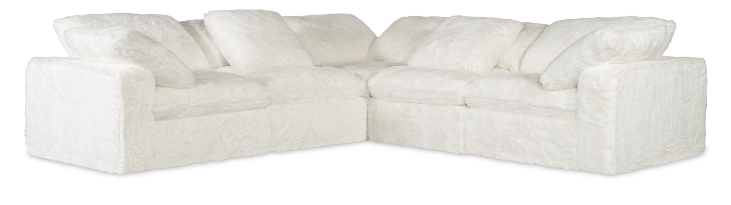 Wrap yourself in cozy with the Barefoot 5-seat comfort sectional, covered in the Yakety Yak natural-colored plush super-soft fabric. Consisting of 3 corner/arm components and two armless components with a loose pillow at each arm, the generously-scaled L-shaped sectional measures 125 inches wide by 125 inches deep.