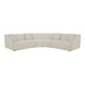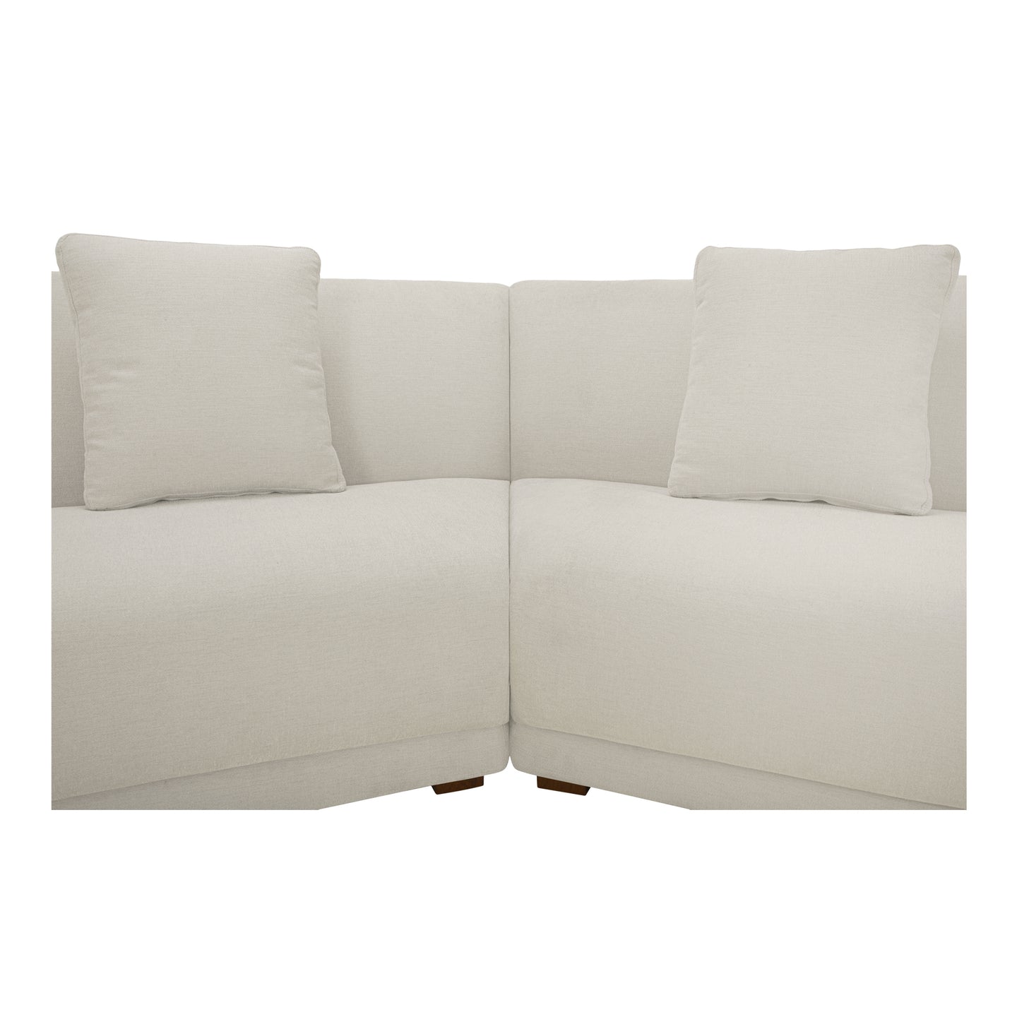 The Fraser sectional’s contemporary modular design infuses the elegance of gentle slopes with linear precision, harmoniously merging soft curves and angular forms into its 60s and 70s-inspired aesthetic. Crafted on a minimalist plinth base and upholstered in sumptuous 100% polyester, foam and fiber seating invites serene repose.