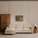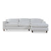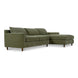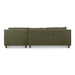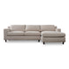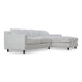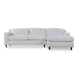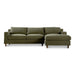The Hutton sectional features soft-to-the-touch chenille fabric constructed from 100% polyester treated with C0 performance technology. A traditional higher back and tapered dark wood legs nod to mid-century aesthetics while providing contemporary coziness as a plush feather topper ensures unparalleled comfort.