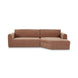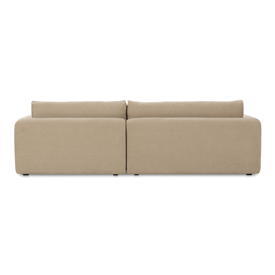 The Madrid sectional's soft chenille fabric upholstery and unique, angled wide chaise make it unlike any other silhouette. Soft, with a railroad weave, it invites the touch, while tonal piping draws the eye. A firm soft seat and plush removable, reversible back cushions ensure lasting comfort and versatility.