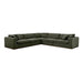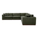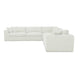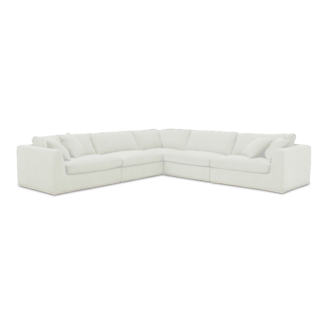 The Rue modular sectional features a generous 70% feather-fill topper within its seating, accompanied by toss cushions for an added layer of coziness. Its elegant silhouette is highlighted by a rubber wood base, creating a sleek floating appearance, all supported by subtle wooden legs. Designed with extreme comfort in mind, this modular embodies easy, neutral styling.