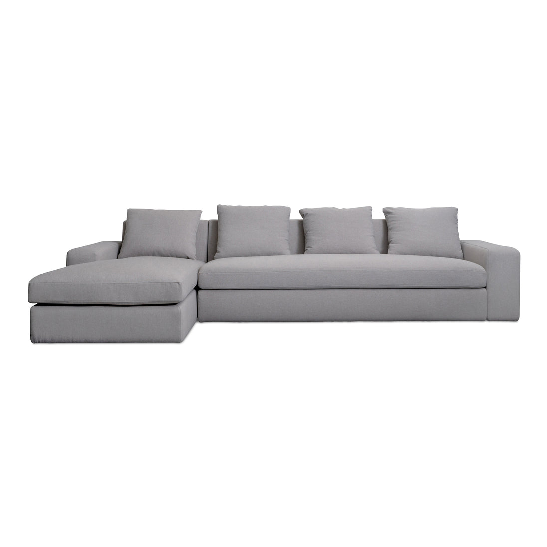 The Thomas sectional offers comfortable seating in durable C0 100% polyester fabric. An oversized structure, wide track arm, and bench-style seat topped with a 70% feather blend ensure even comfort. Featuring removable back cushions and even channeling within the seat to ensure its feathers stay evenly distributed, it is perfect for family living.