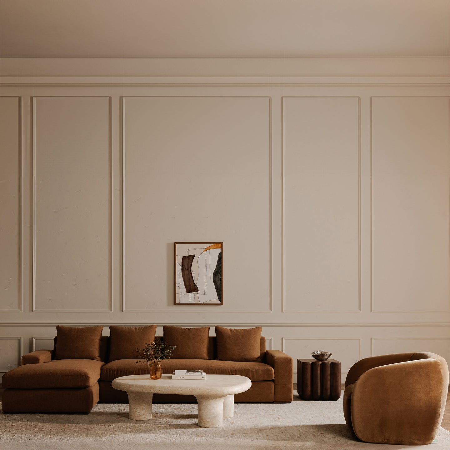 The Thomas sectional offers an expansive 125 inches of seating in durable C0 100% polyester fabric. An oversized structure, wide track arm, and bench-style seat topped with a 70% feather blend ensure even comfort. Featuring removable back cushions and even channeling within the seat to ensure its feathers stay evenly distributed, it is perfect for family living.