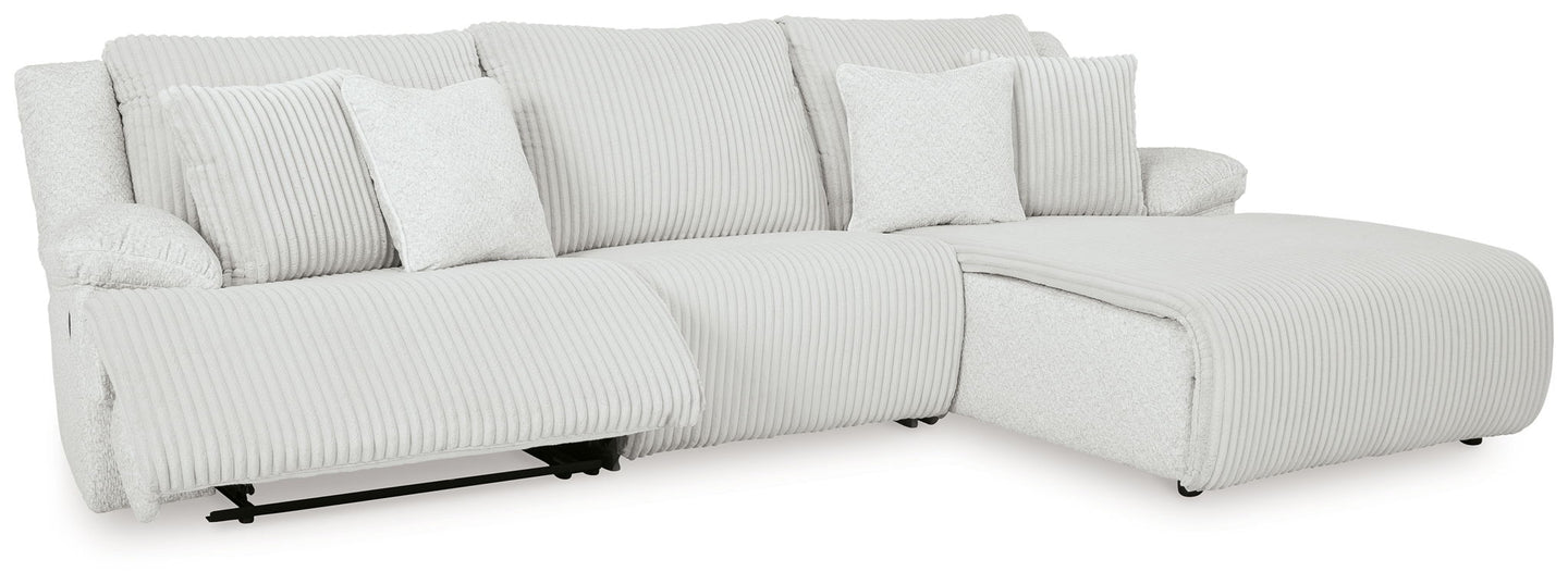 - Includes 3 pieces: left-arm facing recliner, armless chair and right-arm facing press back chaise
