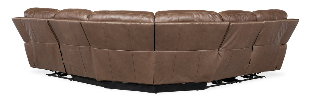 The Torres 5-Piece Sectional with power recline and power headrest offers complete support in style. The sleek silhouette features high backs, topstitch trim and a luxurious semi-aniline top-grain leather in the Sorrento Mocha color. The configuration includes power recline and power headrests on the left and right chairs. A USB port is also offered.
