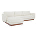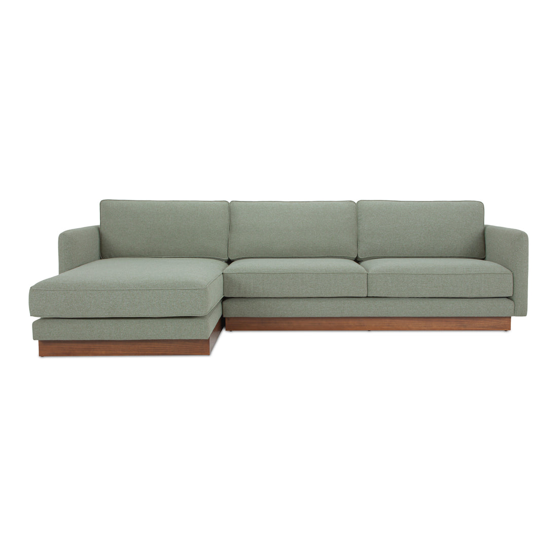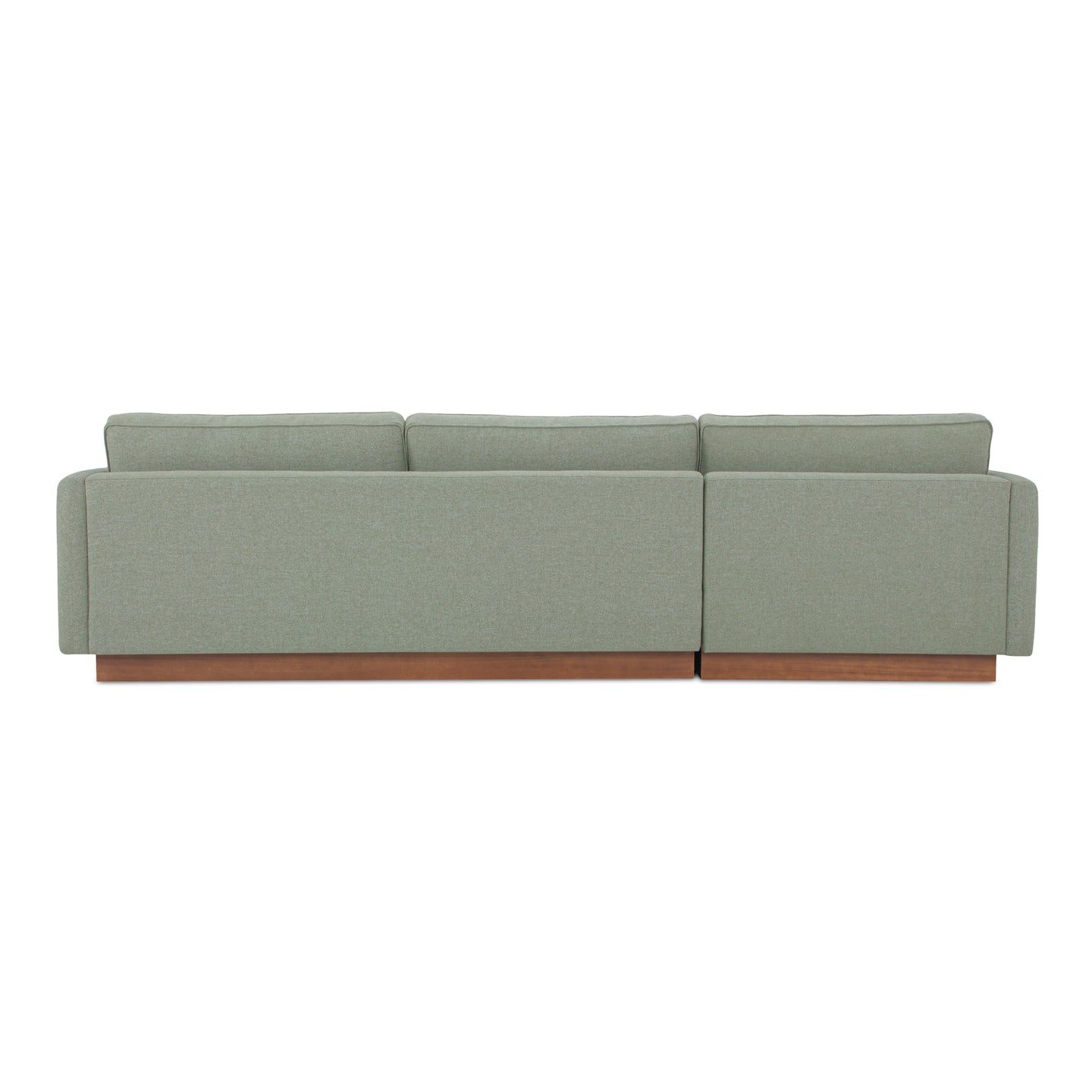 The Vernon sectional blends mid-century design with modern functionality. It features a wooden plinth base for an elevated, lighter appearance. This sectional offers unmatched comfort with reversible cushions. Upholstered in durable, OEKO-TEX and Green Guard-certified fabric, it is ideal for family living, combining everyday practicality with durability.
