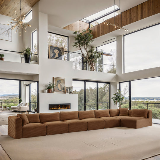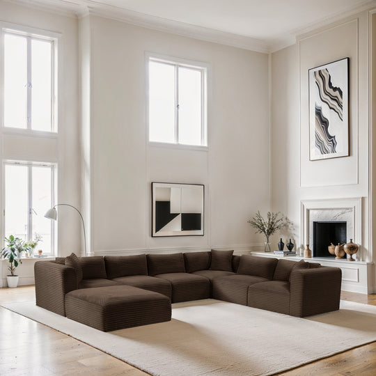 Shaggy Corduroy Performance Fabric Modular Sectional