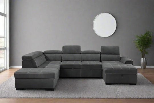 Suzi - Modern Fabric Sofa Bed Sectional With Adjustable Headrests & Storage Chaise