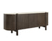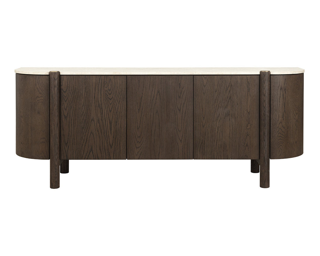 The Banyan Sideboard is a standout with rounded curves and sculpted edges. Crafted to perfection with a cream marble top and a solid oak wood veneer base, this sideboard is a modern masterpiece.