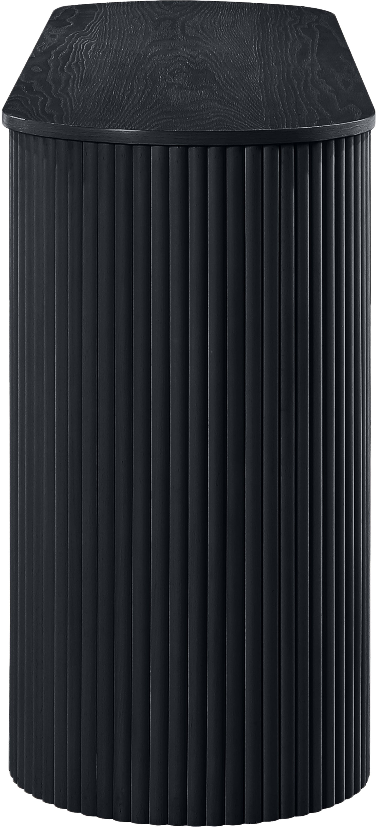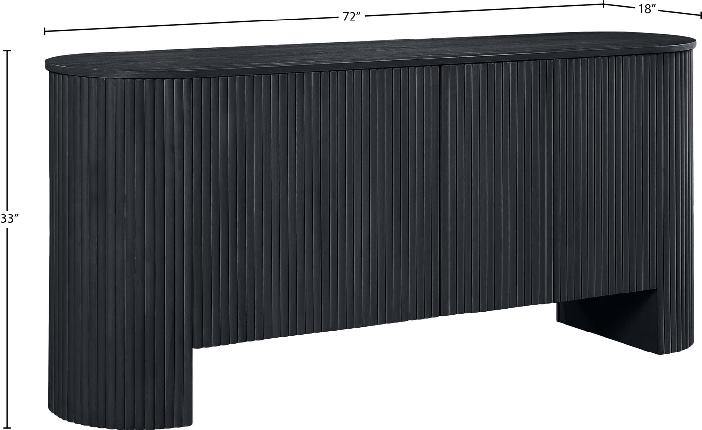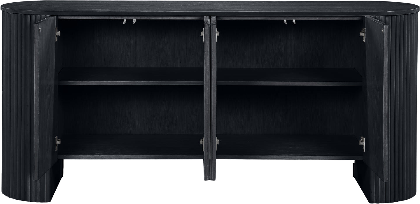 Be the perfect hostess when you keep everything you need in the dining room organized inside the attractive confines of this Belinda black sideboard/buffet. Crafted with oak veneer, solid wood, and MDF, it blends durability with elegance and offerd loads of room for dining room essentials. The fluted detailing adds a touch of refinement, while its contemporary design ensures it seamlessly integrates into modern spaces. This sideboard is more than just storage-it's a statement piece that enhances functionality with style, perfect for those who appreciate quality craftsmanship and timeless appeal.