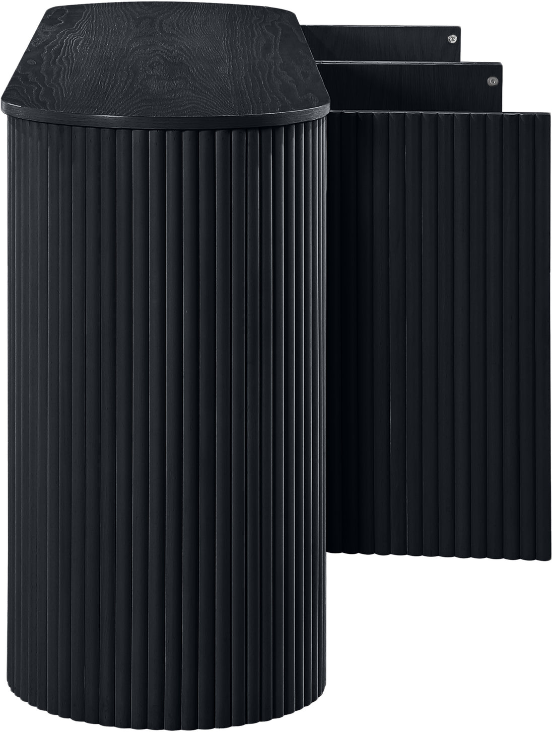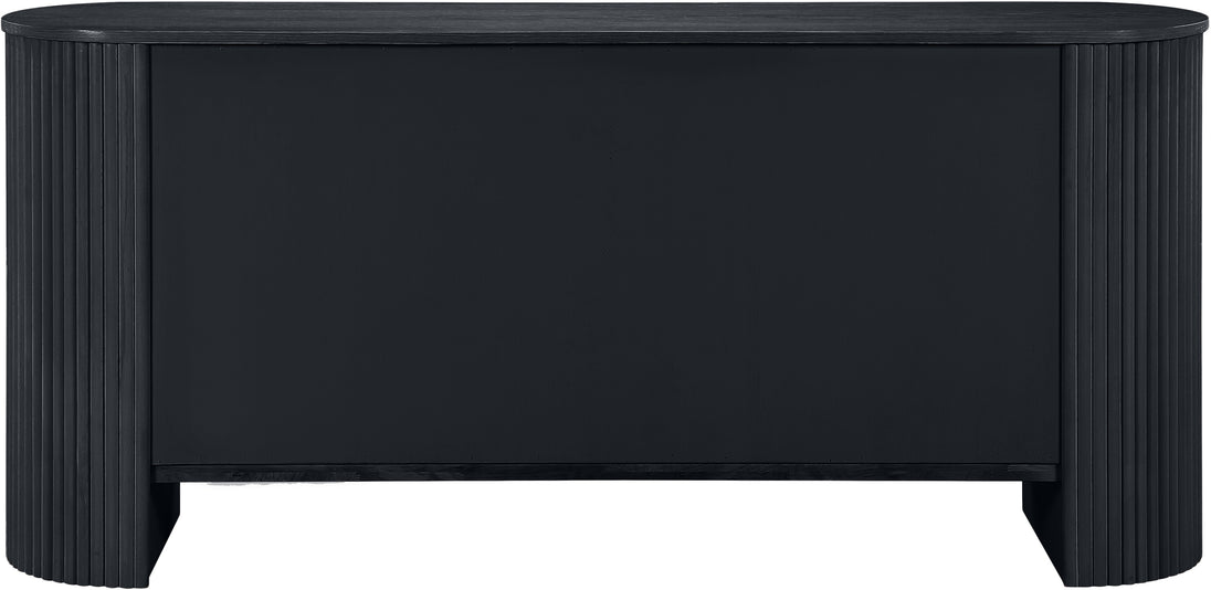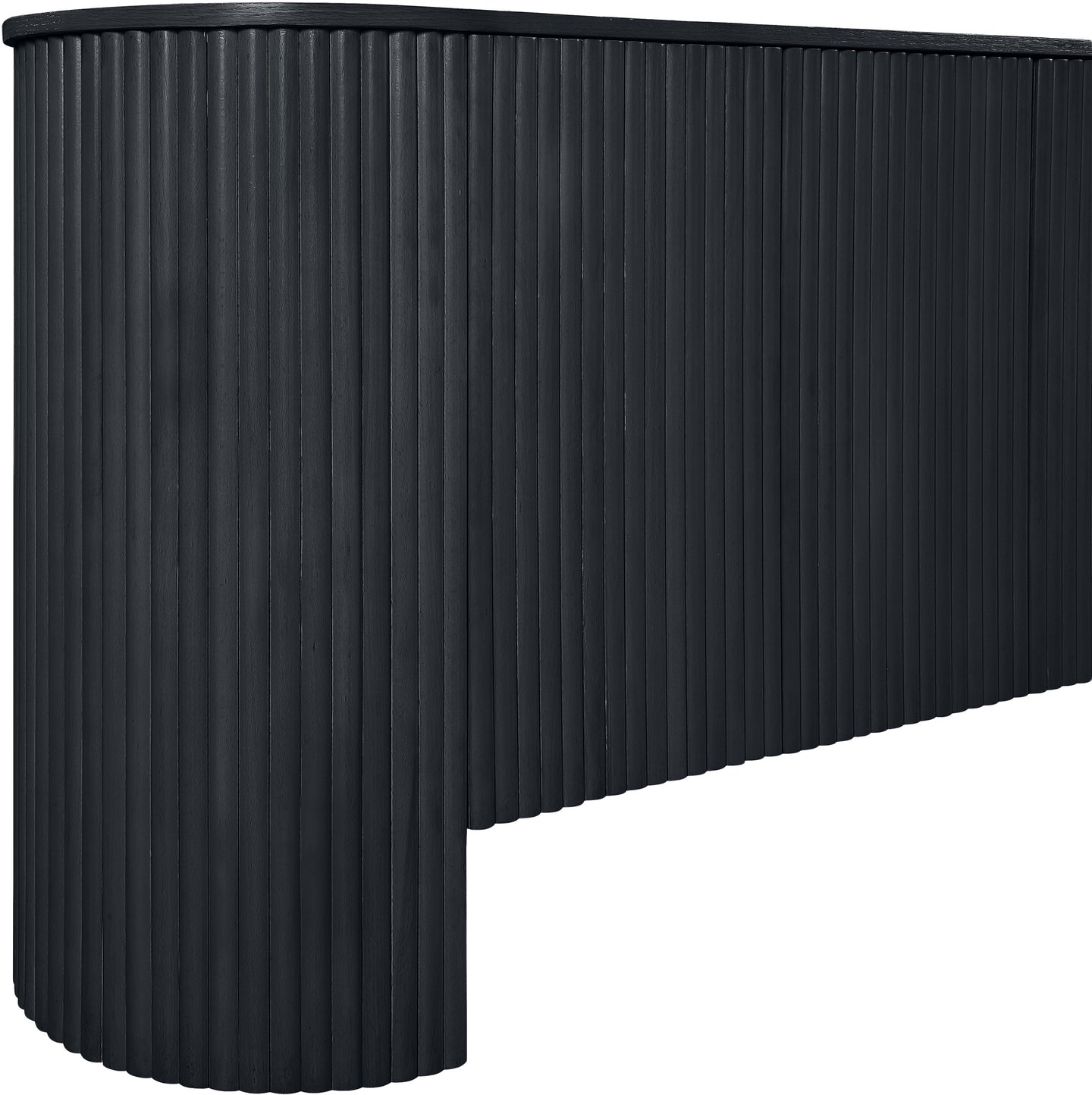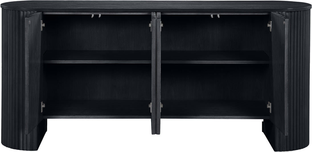 Be the perfect hostess when you keep everything you need in the dining room organized inside the attractive confines of this Belinda black sideboard/buffet. Crafted with oak veneer, solid wood, and MDF, it blends durability with elegance and offerd loads of room for dining room essentials. The fluted detailing adds a touch of refinement, while its contemporary design ensures it seamlessly integrates into modern spaces. This sideboard is more than just storage-it's a statement piece that enhances functionality with style, perfect for those who appreciate quality craftsmanship and timeless appeal.
