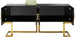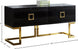 Ensure the items you need at mealtime are close at hand with this handsome Beth Sideboard Buffet from Meridian Furniture. This indispensable piece is a modern marvel with its contemporary design featuring black lacquer with a gold stainless steel trim and base. Open the doors to reveal a large area that's suitable for storing everything from serving bowls to out-of-season dinnerware.