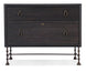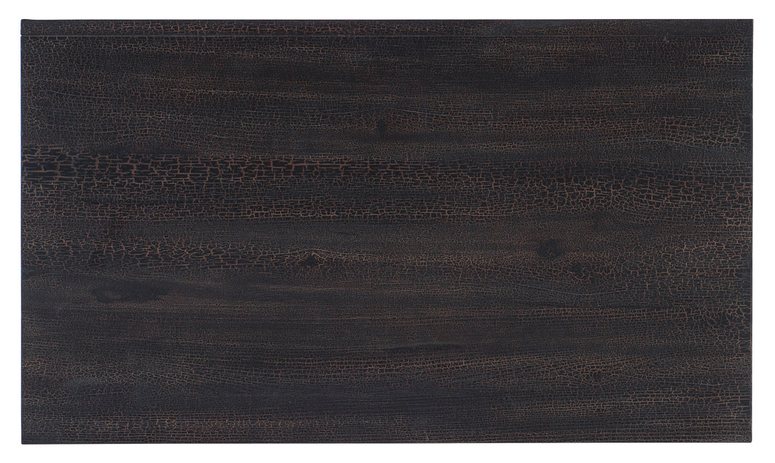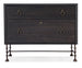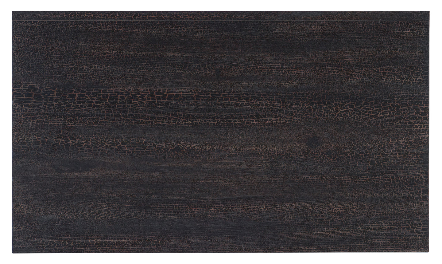 - Finish: Charred Timber: inspired by the restorative beauty of a fire-ravaged forest. Distressing includes worm holes, rasping, gauging, plane shock, hand plane, drawknife, wire brush and screw head. Dark brushed bronze metal legs and bail pulls.