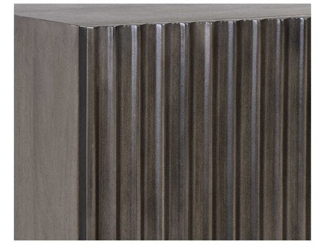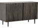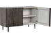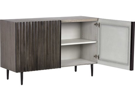 This bold sideboard will command attention through dining, living and lounge spaces. Features a grey mango wood frame with dramatic sculpted details on the face of the two cabinets. Steel legs complete the urban and contemporary look. Made in India. With refined craftsmanship, this design was brought to life by skilled local artisans. By nature, these materials develop unique imperfections such as fissures, markings and colour variations for a truly one-of-a-kind piece.