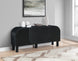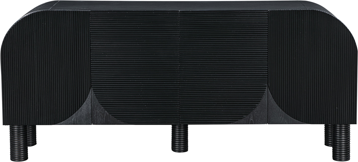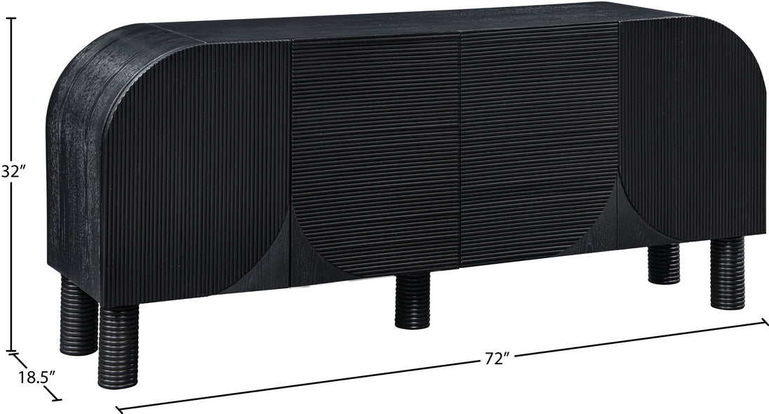 Enhance your dining room with the Casablanca Black Sideboard Buffet. Crafted with a rich black finish and ash wood veneer construction, it exudes timeless elegance with its art deco design. Concealed behind its doors lies ample storage for your formal dinnerware, flatware, and linens, keeping them organized and easily accessible. Designed for versatility and easy storage, this piece gives you a stylish surface for displaying dishes or serving food during special occasions. Add valuable functionality and beauty to your dining area with this sleek and handsome sideboard buffet.
