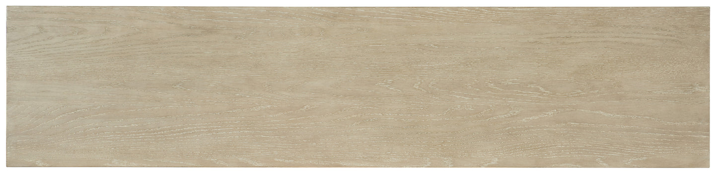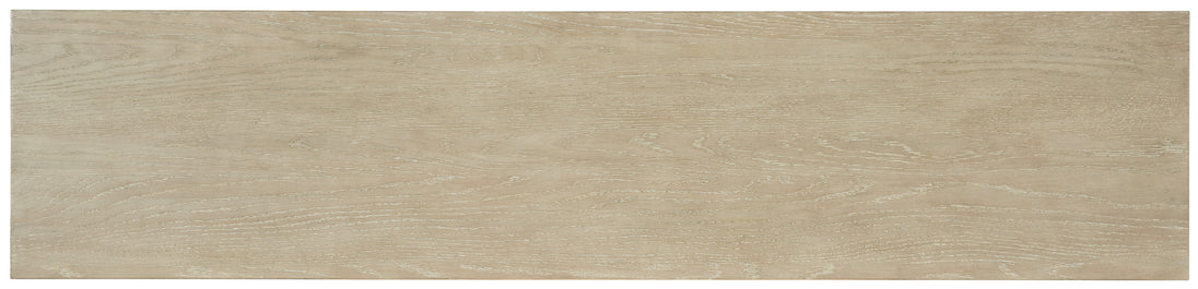 Serene and simple with a soothing neutral color palette, the TV-ready Cascade Credenza helps you create a place of retreat in your home where you can slow down and relax. The credenza is finished in Terrain, a soft taupe finish on Oak veneers with dry brushing and accented by champagne-colored tab pull hardware. Four doors with soft-close hinges and one adjustable shelf behind each pair of doors. There’s a ventilated back panel with one power supply and levelers. Accommodates up to a 75-inch TV.