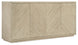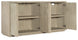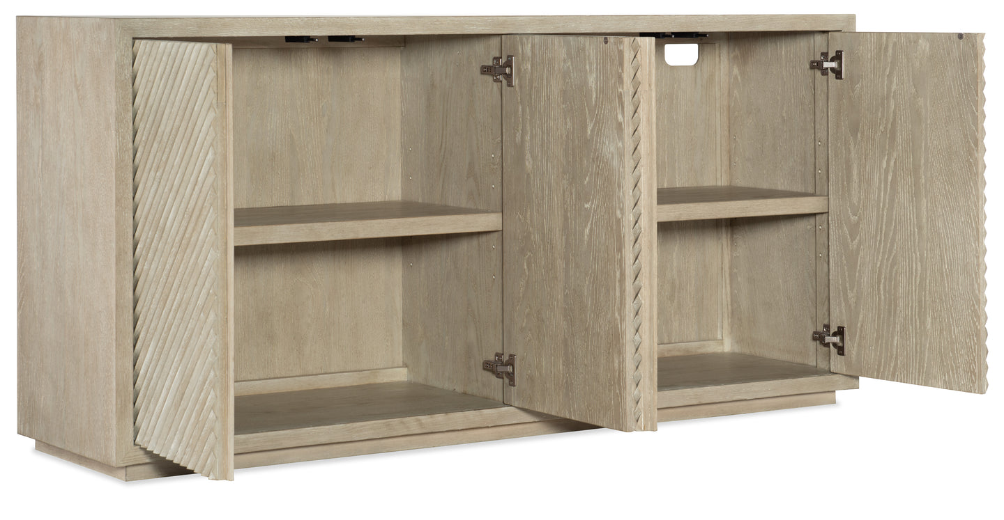 Create a serene and tranquil haven with the Cascade Credenza in an organic soft taupe finish on Oak Veneers with a tactile reeded front in a diagonal pattern. Modern and relaxing, the Cascade Credenza has four doors with soft-close hinges and touch latches with one adjustable shelf behind each pair of doors.