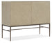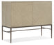 With a tranquil Zen vibe, the versatile Cascade Credenza is crafted of Oak Veneers in a soft taupe finish with slender metal legs. The Terrain finish is dry-brushed for a casual and tactile feel with reeded fronts on the two doors. The pair of doors has soft-close hinges and touch latches and one adjustable shelf behind.