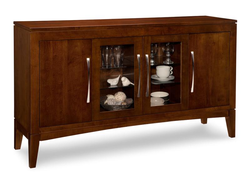 The Catalina Sideboard blends display and hidden storage for a functional yet elegant solution. Two wood doors on the outside provide concealed storage with adjustable wood shelves, while the two glass doors in the center showcase adjustable glass shelves perfect for displaying glassware, dishes, or decorative items. This thoughtfully designed piece adds both organization and style to your dining area.