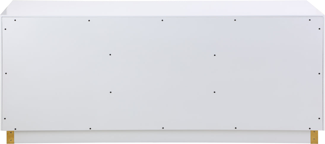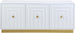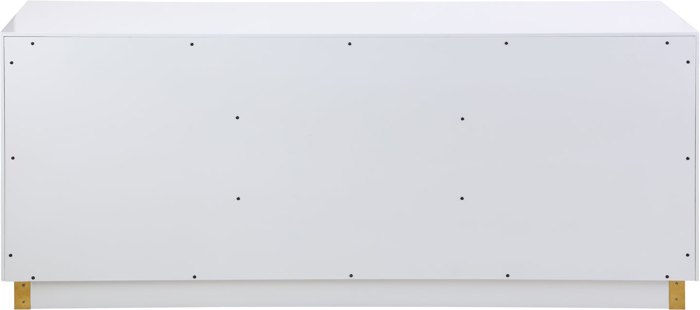 Give your dining room space a bold new look with this Cosmopolitan sideboard buffet. An amazing amount of storage space for china, dishes, serving pieces, and other essentials is only half the story with the Cosmopolitan. This white lacquer-finished sideboard features acrylic and gold hardware and a gold stainless steel base for a look that's oozing contemporary panache from every angle. Use the top for a makeshift dessert bar after dinner.
