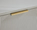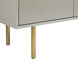 Effortlessly modern with a refined silhouette, this impressive sideboard will add style to any space. Crafted from a wood frame with a high gloss grey finish. Features three cabinets with a linear design. Completed with gold stainless steel hardware. As wood is an organic, porous material, these pieces will contain natural variation of texture and may also exhibit fine indentations and cracks. Wood pieces will also display a disparity of colour and grain, and visible knots and burls that add to the character of each piece.