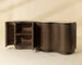 Meticulously crafted with a sinuous silhouette and seamless functionality, the Fable Sideboard will surely make a statement. Its gently curved form is crafted from richly grained solid oak wood and crowned with a travertine top that brings an organic contrast in tone and texture.