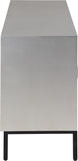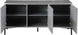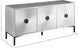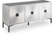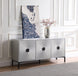 Set up a makeshift dessert bar atop this Glitz sideboard buffet. This handsome piece is just what your dining room needs to inject a bit of drama into the mix and liven things up a bit. This piece features wood construction for lasting durability and beauty and an antique silver finish with a matte black base for a contemporary touch. The starburst pattern adds a burst of wow to the design and ensures the buffet, and storage inside helps you organize all your dinnerware and serving pieces.