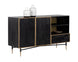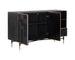 Influenced by global travels, skilled artisans use intricate woodworking techniques to bring the Markwood sideboard to life. The eye-catching glacier grey mango wood and antique bronze frame result in a modern look. Features two cabinets, shelving and a drawer for ample storage. Coordinating nightstand also available. As wood is an organic, porous material, these pieces will contain natural variation of texture and may also exhibit fine indentations and cracks. Wood pieces will also display a disparity of colour and grain, and visible knots and burls that add to the character of each piece.