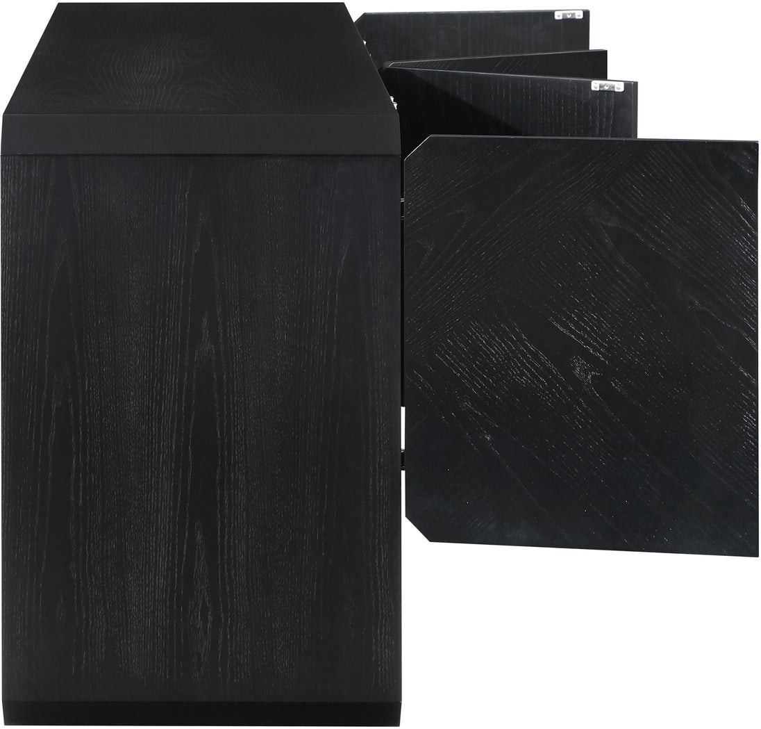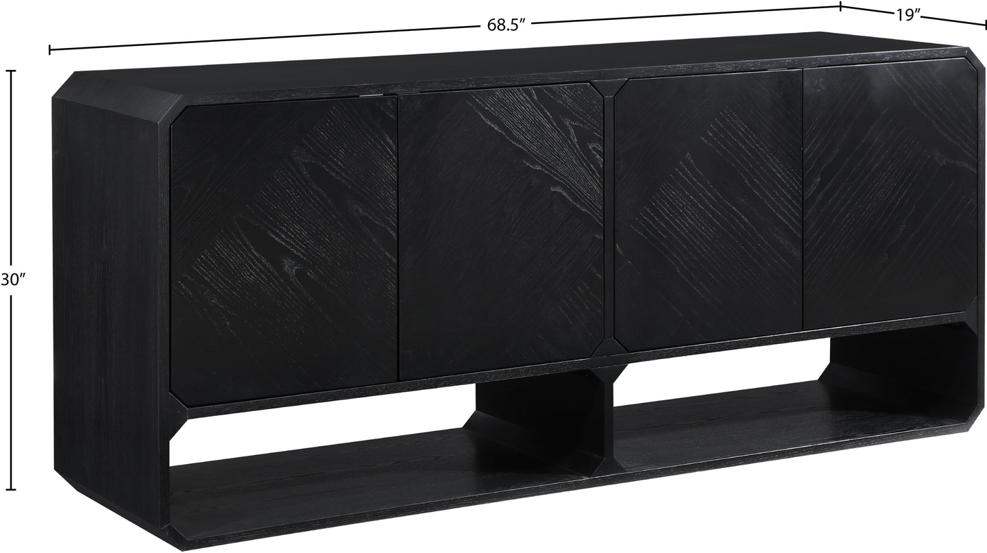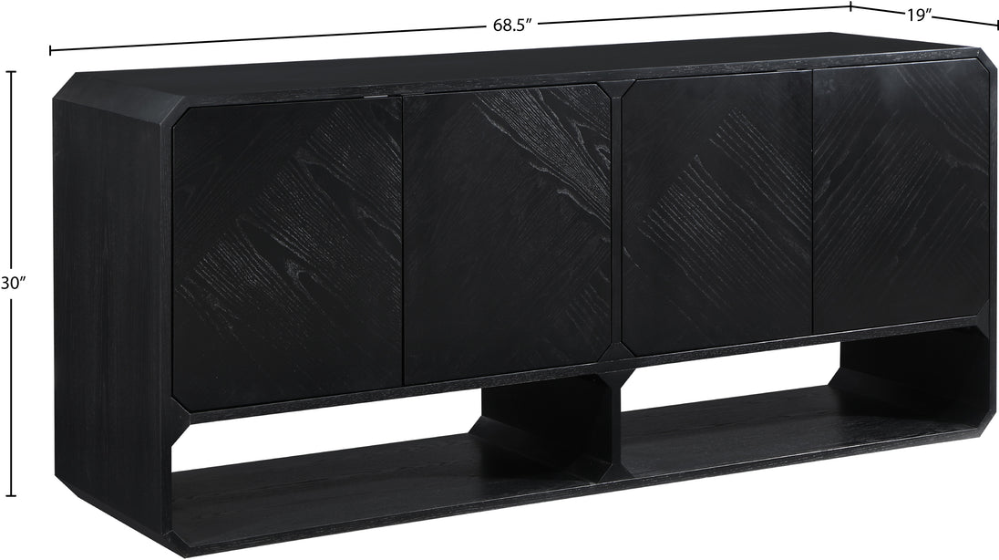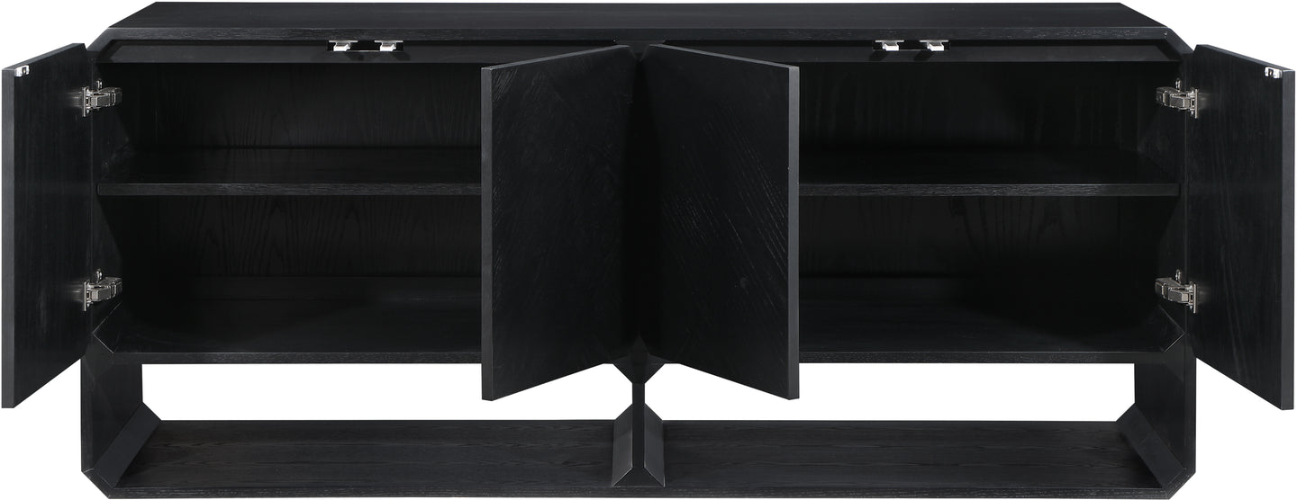 Introduce an air of sophistication and class to your living space with the stunning Parker Sideboard / Buffet. Crafted from top-quality solid wood, this furniture piece is built to last and is sure to impress with its black finish. Boasting a rich ash veneer and a captivating mid-century design, this sideboard exudes warmth, elegance, and charm, making it a perfect addition to any room in your home.