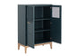 With a timeless design, this mid-century modern highboard is a delightful addition to any space. Crafted with a teal oak veneer for a subtle pop of colour, and complemented with a light wash rubberwood base. Includes ample storage with metal hardware in a gold finish. Pairs well with the Rivero media console and cabinet.