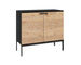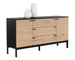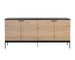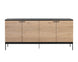 A large media stand that evokes a modern industrial design, making it perfect for living or lounge spaces. Features a black wood frame with cabinets in a brown rustic oak veneer. Completed with a matte black iron legs and aluminum handles. Includes removable and adjustable shelving for versatility. Pairs well with the Rosso dining table. Also available in small and medium sizes. Anti tipping kit included. As wood is an organic, porous material, these pieces will contain natural variation of texture and may also exhibit fine indentations and cracks. Wood pieces will also display a disparity of colour and grain, and visible knots and burls that add to the character of each piece.