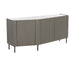 Featuring an angular shape, this unconventional sideboard is designed with modern appeal. Crafted with a grey solid mango wood frame and a white marble top. Black powder coated steel legs complete the look. As marble is a natural material, unique veining, pitting, fissures, micro-cracks and colour variations are all characteristics that add to the uniqueness and beauty of each piece.