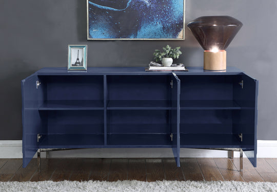 SALE                 Collette Sideboard/Buffet Organize the dining room with the help of this Collette Sideboard Buffet. This Meridian Furniture buffet has a rich chrome stainless steel base that adds a gleaming, modish vibe and chevron navy blue lacquered exterior for...Sale price $1,980.00Regular price $2,640.00Sale price $1,980.00Regular price $2,640.00