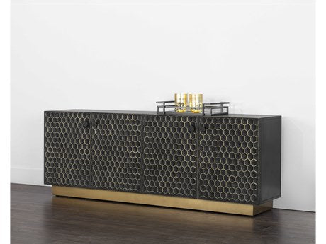 SALE                             Hive Sideboard Crafted by local artisans, this bold sideboard features an eye-catching honeycomb pattern. The black iron cabinets are hand painted in a brass finish with varying pressure and strokes to bring unique dimension to each piece. Available...Sale price From $2,248.00Regular price $2,997.00Sale price From $2,248.00Regular price $2,997.00