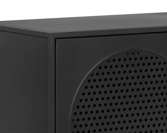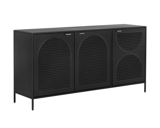A timeless sideboard with a steamlined composition. Crafted with a black metal frame and completed with brass handles. Features open shelving and three cabinets with an arched perforated metal design. Pairs well with the Aziza media...Sale price $3,823.00Regular price $5,097.00Sale price $3,823.00Regular price $5,097.00 -