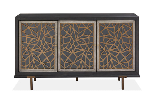 Items Available Credenza: 70" L x 18" D x 36" H Features 4-door credenza Solid wood frame in matte black finish with antique gold trimSale price $2,499.00Regular price $3,499.00Sale price $2,499.00Regular price $3,499.00 -