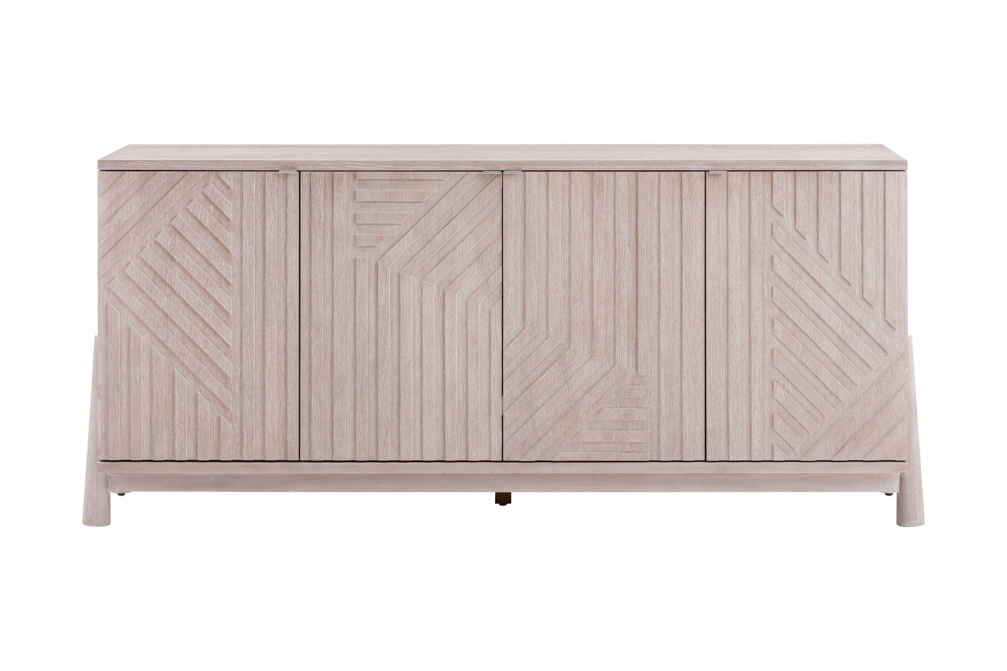 The Horizons Server is a seamless blend of modern design and coastal aesthetics with its cerused white oak finish and brushed nickel edge pulls..Featuring four doors with a geometric-inspired design and soft-close hinges, this server offers ample storage space for your dining essentials. Inside, two adjustable shelves and media cord management ensure practicality and organization. With its sleek design and functional features, the Horizons Server complements any modern coastal decor effortlessly.