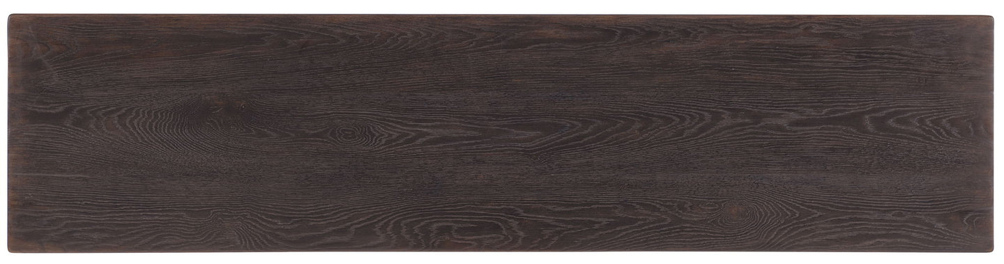 The Driftwood Sideboard Base in warm tones is designed to function as a standalone piece or to pair with the 6820-75900T-80 Display Hutch for a complete display unit. Featuring four self-closing drawers, a removable silverware tray, and a fixed bottom shelf, this base balances utility and rustic design. Its handcrafted finish and oak veneer details offer a textured, naturally aged aesthetic.