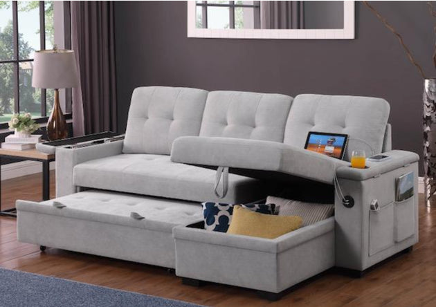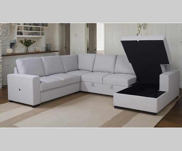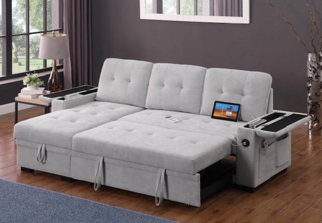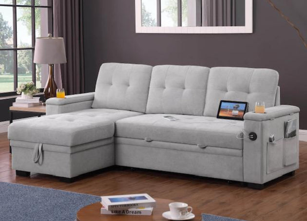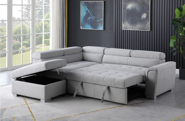 Allora Reversible Sleeper Sectional w/ Storage - Grey Fabric
