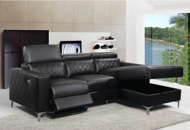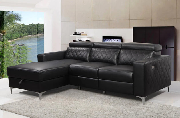 Anisha Black Gel Leather Power Recliner Sectional w/ Adjustable Headrest